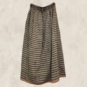 A wide and long skirt in hand woven silk.