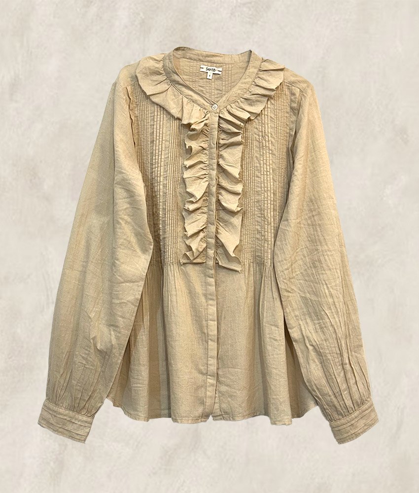 Shirt in cotton Khadi with pintucks pleats at front and back side.