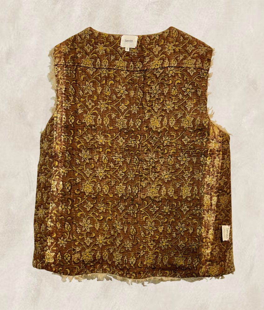 A vest in Kantha lined with a fur made of 100% mohair wool.