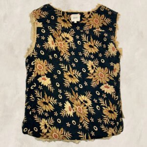 A vest in Kantha lined with a fur made of 100% mohair wool.