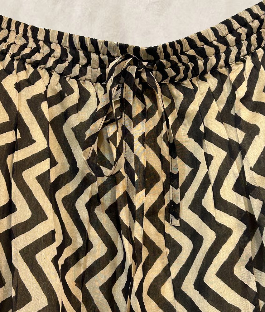 Plis creux sur le devant cousus sur une hauteur de 19 cm depuis la ceinture.
