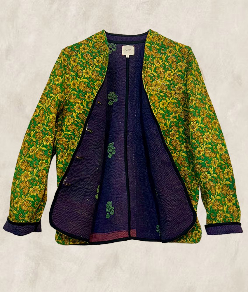 Nos kanthas sont entièrement surpiqués à la main au Bengal.